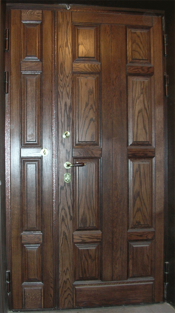 ‣ Металлические двери отличаются повышенной прочностью и безопасностью, а их цена доступностью. Они устойчивы к физическим воздействиям и обладают хорошими тепло и звукоизоляционными свойствами. Внешний вид входных металлических дверей в частный дом может быть разнообразным за счет различных отделок.